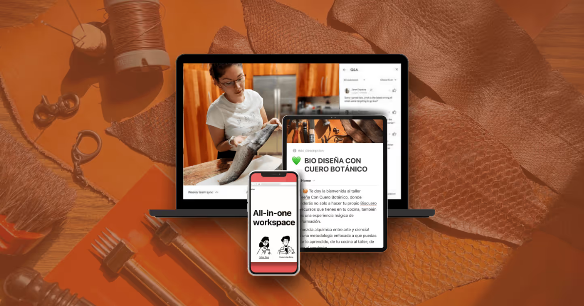 Programa formativo online de 5 semanas donde aprenderás fundamentos clave para crear tu propio cuero biodegradable desde casa.